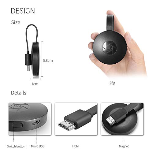 Compatibilità universale:Support YouTube, Facebook, Twitter, Netflix, Hulu, Spotify, Hbonow, CBS, JUST DANCE, PANDORA, ecc. Compatibile con Android 4.2, Mac OS X 10.9, iOS 7.0, Windows 8.1. Inoltre, supporta più formati di foto, video e file, fuori dalle catene del cavo, la riunione è diventata intelligente ed efficiente.