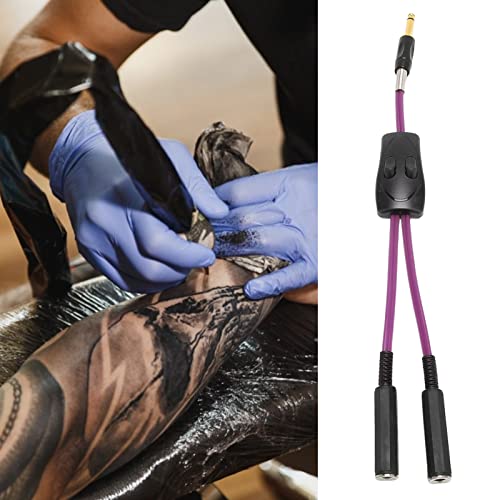 Adattatore a Doppia Interfaccia per Tatuaggi, Cavo Flessibile per Tatuaggi a Doppia Connessione Corrente Stabile Spina Audio da 6,35 Mm Professionale per Tatuatori a RCA DC Clip Cord (Viola)