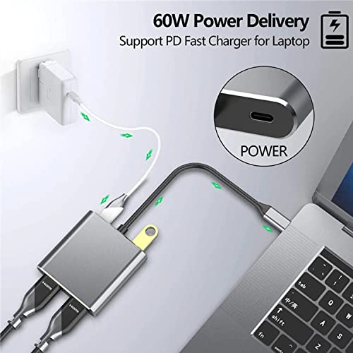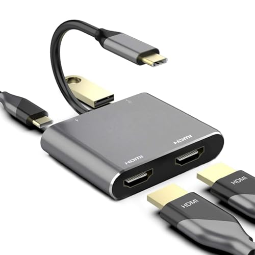YMY Adattatore USB C a doppio HDMI, Hub USB tipo C 4 in 1 con 2 HDMI (4K a 30Hz)/USB 3.0/PD di ricarica, doppio schermo HD Docking Station USB-C per Windows, MacOS