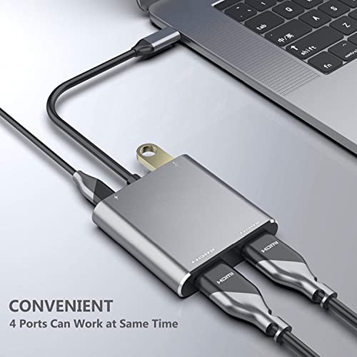 Adattatore multiporta USB C 4 in 1 a doppio HDMI - L'articolo viene fornito con 2 HDMI/USB3.0/USB-C PD ricarica, doppia risoluzione HDMI fino a 4K@30Hz;