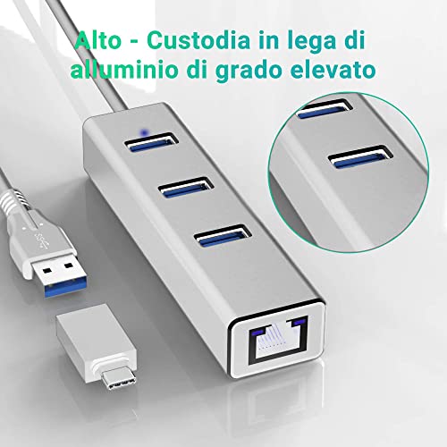 Adj Adattatore USB C Ethernet to USB 3.0, Hub USB C Ethernet LAN 1000 Mbps Gigabit a RJ45, Convertitore USB Type-C, Ingresso Micro-USB, Supporta MacBook PRO/Air, iPad PRO 2020/2018, Surface Book, XPS