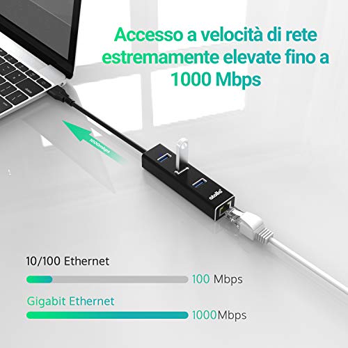 Adattatore USB 3.0 Ethernet, atolla Hub USB 3.0 con Ethernet - 3 Porte USB SuperSpeed Trasmissione Dati e Adattatore Ethernet 1000 Mbps Gigabit Lan RJ45, Supporta MacBook, iMac, XPS, Surface, Notebook