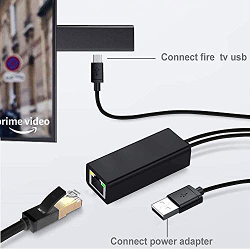 Adattatore Ethernet Fire TV Stick, adattatore Ethernet per Fire Stick e Chromecast, Chromecast Ultra 4k, Fire TV Cube, Micro USB a LAN RJ45 con cavo di alimentazione di Dragon Trading