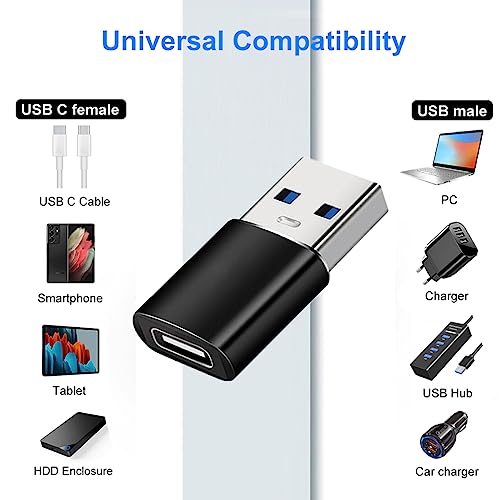 Adattatore USB a USB C, Adattatore USB C Femmina a USB 3.1 Maschio, Adattatore USB Tipo C a USB A Compatibile con iPhone 11 12 13 14 Pro Max, Samsung Galaxy S22 S21 S20, MacBook, PC (Nero)