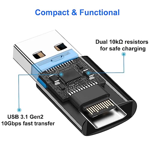 Confezione da 1. USB A 3.1 a USB C. Questo adattatore USB C converte una porta USB-C in una normale porta USB standard in qualsiasi momento, e vi sarà molto utile. USB A 3.1 Gen2 10Gbps unilaterale, velocità di trasferimento più elevate rispetto agli adattatori USB convenzionali, retrocompatibile con USB 3.0 USB 2.0.