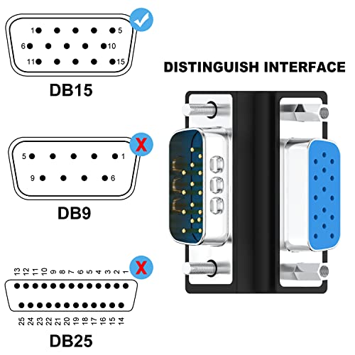 J&D Adattatore di Db 15 VGA 15 Pin 90 Gradi, 2 Packs D-Sub 15 Connettore Nichelato Ad Angolo Retto Convertitore Accoppiatore Adattatore di VGA 15 Pin Maschio a Femmina