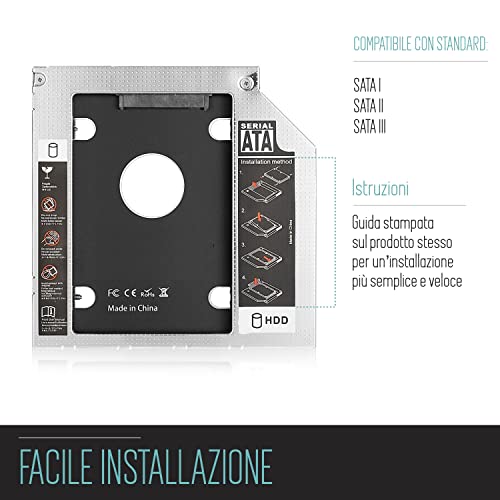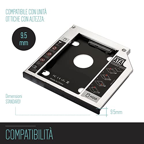 Adattatore Hdd/Ssd Sata Iii per Drive Cd/Dvd/Blu-Ray Altezza 9.5 mm