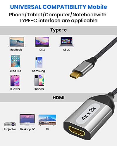 【Compatibilità universale】USB c HDMI Progettato per dispositivi di tipo C con uscita video (supporta Thunderbolt 3/4). Adattatore usb c hdmi compatibile con MacBook Pro M1/2018/20172016/Air, IMac 2017 Surface Book 2, Surface Go, HP Envy 13, Pixelbook etc,Supporta samsung S22/S21/S20/S10/S9,Huawei P50/P40/P30/P20/Mate 20/10 etc