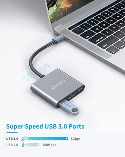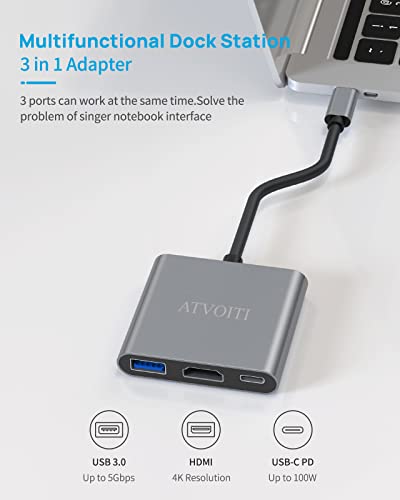 Adattatore USB C a HDMI 4K, Atvoiti 3 in 1 Multiport Adattatore USB 3.0 Tipo C a HDMI, USB C Hub Thunderbolt 3 a HDMI Compatibile con Mac-Book/Chrome-Book Pixel/De-ll XPS 13/Sam-Sung S10/S10