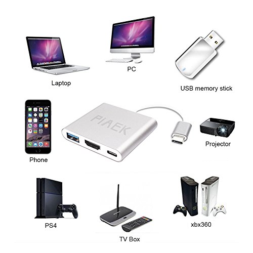 Adattatore HDMI 4 K USB di tipo C, 3 in 1 con porta USB 3.0 e porta di ricarica 3.1 di tipo C, per MacBook, ChromeBook Pixel, Samsung S8