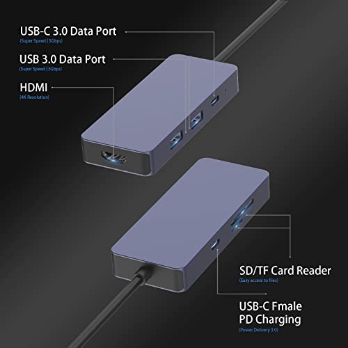 【7 in 1 espansione massiccia】Questo hub USB C è dotato di un'uscita HDMI 4K@30Hz, 2 porte dati USB A 3.0, 1 porta dati USB C 3.0, ricarica rapida 100W PD, lettore di schede SD/TF e offre un'incredibile gamma di funzioni, tutte da un'unica porta USB-C. Plug and play, Assicurati che le porte USB C dei tuoi dispositivi supportino l'output del display per ottenere l'espansione dello schermo