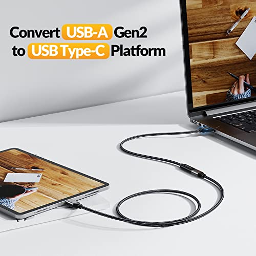 【Estrema durata】 Il cavo intrecciato in cotone senza grovigli garantisce una maggiore durata fino a 25.000 pieghe. Chip E-Mark per una ricarica rapida e sicura. Questo cavo da USB A maschio a USB C femmina è realizzato in lega di alluminio di alta qualità e un connettore placcato in oro garantisce durata e stabilità. Più resistente dei normali cavi USB.