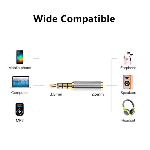 Allows you to use your favorite 2.5mm earphone headset on some 3.5mm Mobile Phone PDA, IPAQ, MP3, MP4 player or audio / video player device.