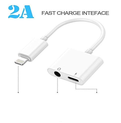 Adattatore jack per cuffie KOOPAO, dongle auricolare da 3,5 mm a AUX Audio 2 in 1 Adattatore per musica e caricabatterie Cavo di ricarica per telefono 7 7Plus 8 8Plus X XR XS MAX Supporto Sistema IOS