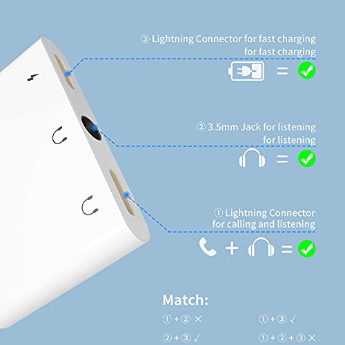 Adattatore jack per cuffie per Phone (3 in 1) AUX Dual Audio e connettore di ricarica per Phone 11/XS/XS Max/XR/X/7/7 Plus/8/8 Plus, pad, pod