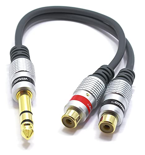 Adattatore Jack 6.3 Stereo a 2x RCA Audio Vitalco 6.35 Stereo TRS Maschio a Doppio RCA Femmina Cavo Connettore