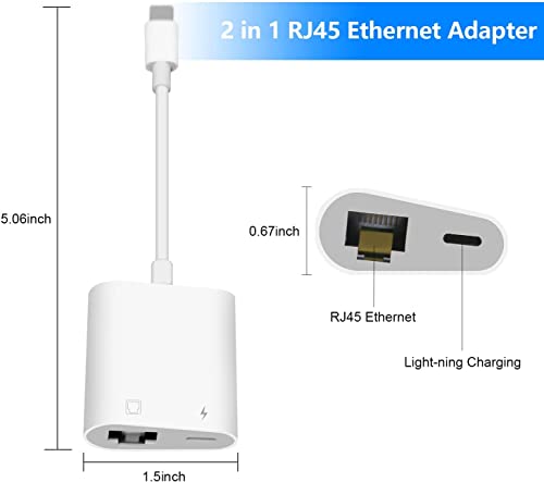 Adattatore da Lightning a Ethernet, 2 in 1 RJ45 Ethernet LAN con funzione di ricarica per lPhone/lPad, adattatore Ethernet 100 Mbps, funzione di ricarica ad alta velocità, supporto iOS 15 o superiore