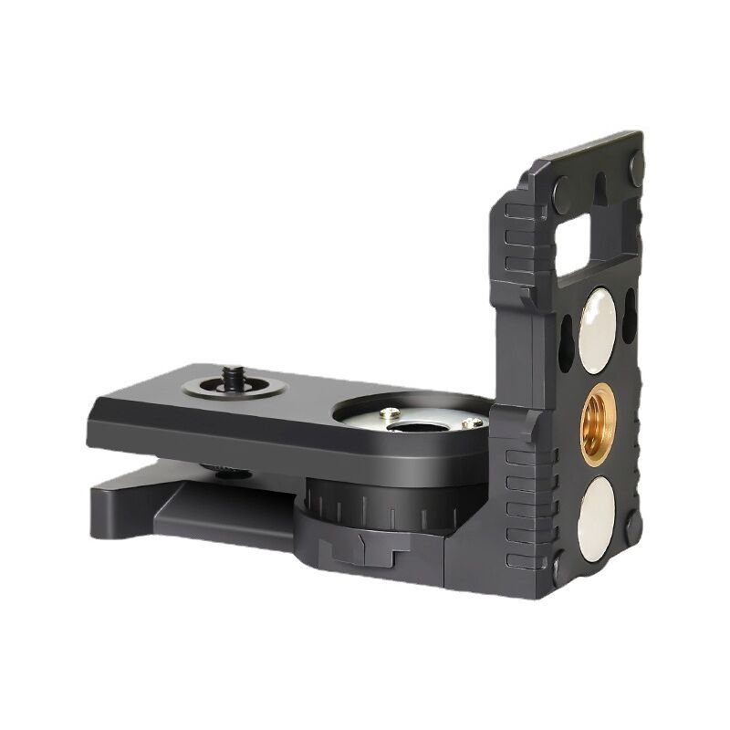 Staffa magnetica regolabile a 180° - : Filettatura maschio da 1/4-20 per la livella laser, una staffa da 1/4-20 e due filettature femmina da 5/8-11 su un treppiede o asta di montaggio laser. La profondità delle viti di montaggio sul bordo della staffa è di 8 cm, che è adatta per il livello laser che si trova a meno di 8 cm dalla parte posteriore. 【Design magnetico】: 2 magneti in lega a magneti permanenti forniscono una forte forza magnetica e prestazioni stabili. Progettato con gomma che migliora l'attrito sul retro e sul fondo, è sicuro e antiscivolo. Si prega di comprendere che la forza magnetica e la capacità portante del supporto sono correlate alla rugosità e al materiale della superficie dell'oggetto adsorbito. La capacità di carico testata su una piastra di acciaio spessa 1 cm è di 3,5 kg. 【Metodi di installazione multipli】: Il magnete può essere fissato su una superficie metallica o su una piastra in acciaio. Tre speciali fori per chiodi sono progettati per rendere