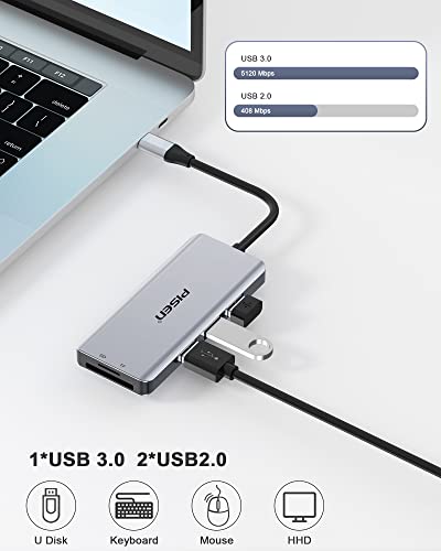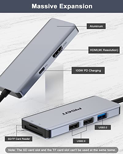 Hub USB C, Adattatore USB C 7 in 1 per MacBook Pro/Air, HDMI 4K, 3 porte USB, PD100 W, Lettore di Schede SD/TF Compatibile con Chromebook, Laptop e Altri Dispositivi di Tipo C (Grigio scuro)