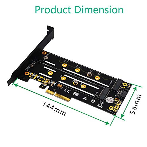 Adattatore PCIE doppio M.2 per SATA o PCIE NVMe SSD con heatSink e LED soluzione gialla, M.2 SSD NVME (m Key) e SATA (b Key) 22110 2280 2260 2242 2230to PCI-e 3.0 x 4 Scheda di espansione Controller
