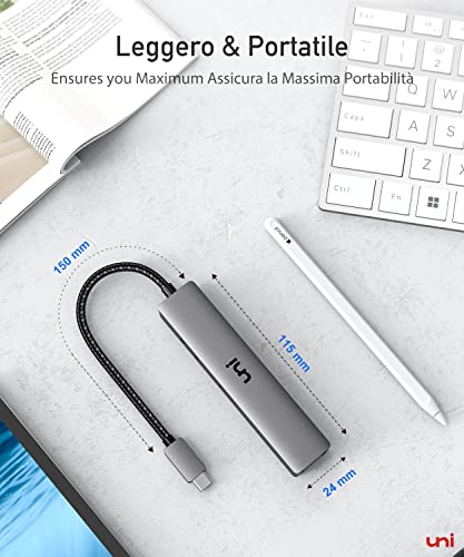 Uni Hub USB C, Adattatore USB C (5 in 1) con Porta Gigabit Ethernet, USB C a HDMI 4K, 3 Porte USB 3.0 [Sottile, Alluminio, Nylon] Hub USB-C per MacBook Pro, iPad Pro, XPS, Surface Book ecc.
