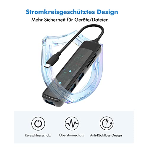 【 L'hub USB C supporta la più recente tecnologia USB 3.0, che consente un trasferimento dati ultra-veloce fino a 5 Gbps. Puoi trasferire file di grandi dimensioni dal tuo computer o smartphone in pochi secondi e risparmiare tempo.