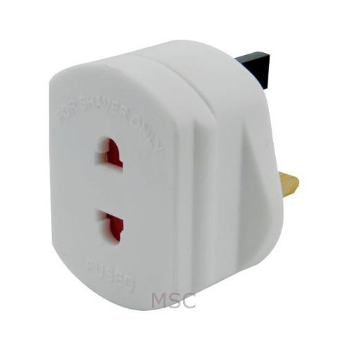 Adattatore per prese UK, da 2 pin a 3 pin, fusibile 1 amp, presa per rasoio/spazzolino da denti.