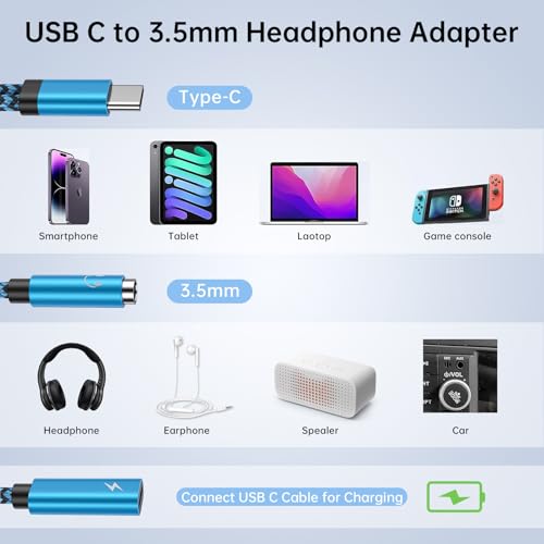 Buona durata: questo adattatore per cuffie USB C robusto guscio in alluminio, resistente alla corrosione e all'ossidazione, può prolungare la durata e proteggere il segnale audio dalle interferenze durante la trasmissione. Il design intrecciato in nylon conferisce all'adattatore secondario USB C jack non solo un aspetto di fascia alta, ma garantisce anche la massima durata, testato 10.000 volte, ripetutamente inserito e scollegato, abbastanza da resistere a torsioni, tirature e grovigli.