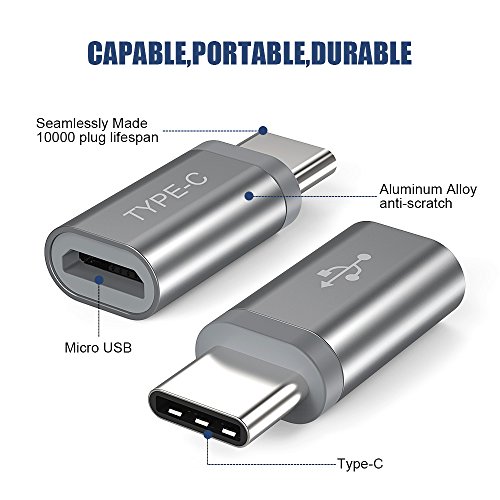 Adattatore USB C, Snowkids (4-pack) micro USB a USB tipo Adpter converte connettore di ricarica rapida per Samsung Galaxy S8 S9 Plus note 8, Google pixel, LG G3, G5, Nexus 5 X 6P, MacBook, HTC U11/10, OnePlus 2 e altri dispositivi USB tipo C e cavo USB (grigio)