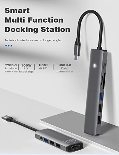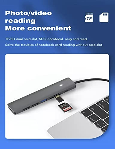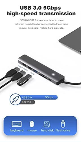 Hub USB C, adattatore USB C, hub 7 in 1 tipo C con 4 K 60 Hz, uscita HDMI, 1 USB 3.0, 2 USB 2.0, lettore di schede SD/micro SD, ricarica PD 3.0, LED, MacBook, Microsoft Surface Book e altro ancora