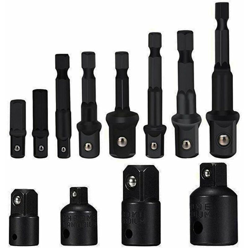 La confezione include - : il gambo esagonale da 1/4 di pollice si adatta a tutti i mandrini a cambio rapido. 4 unità da 1/4", 2 unità da 3/8", 2 unità da 1/2". Le dimensioni perfette lo rendono compatibile con tutte le marche di punte da trapano e utensili con impugnatura per cacciavite 【Alta qualità】: ogni adattatore per chiave a bussola è realizzato in acciaio al vanadio trattato termicamente e rivestito in ossido nero per uso industriale o meccanico 【Cambio rapido】: adatto per cambiare rapidamente i sistemi di 1/4 di mandrino o direttamente nel mandrino. Cambia il tuo set di prese manuali in un set di prese alimentate 【Usato per】: adatto per l'uso con manici per cacciaviti o utensili per cacciaviti elettrici (mandrini esagonali o a tre griffe) per maneggiare i manicotti. Una volta installato, le dimensioni esagonali può essere convertito in dimensioni della testa quadrata che possono essere utilizzate per installazioni di prese 【Applicazione】: l'adattatore per presa è ideale per