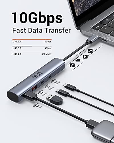 Hub USB C 3.1 da 10 Gbps: hub USB C Selore con le porte dati USB C/A 3.1 più convenienti, 2 porte USB A 3.1 + 2 porte USB C 3.1. La 4 porte possono funzionare contemporaneamente e possono essere collegate a una tastiera, un mouse, un disco U o un disco rigido, rendendo il tuo ufficio quotidiano intelligente e conveniente. ❤ Nota: questo hub USB C non supporta le funzioni di ricarica o uscita video. Solo per il trasferimento dei dati.
