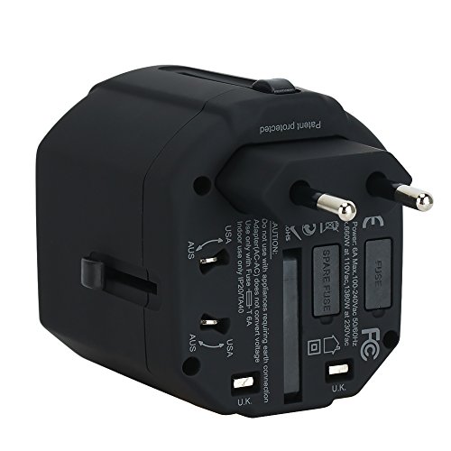 Adattatore Universale da Viaggio Spina Presa Internazionale 2 Porte USB Per IT UK USA EU AUS Protezione da Fusibile Con Custodia Nero