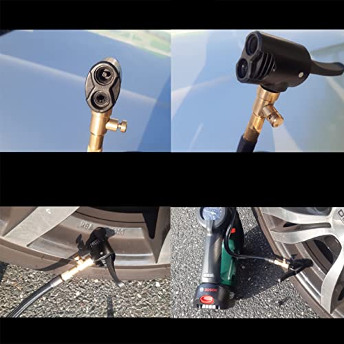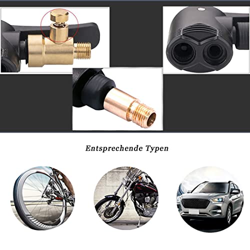 【Valvole filettate per pneumatici】 Attacco filettato maschio universale da 8 mm, adatto per valvole per pneumatici americane e francesi, premere verso il basso la clip e serrare la valvola per iniziare a gonfiare. Rilasciare la clip al termine del gonfiaggio.