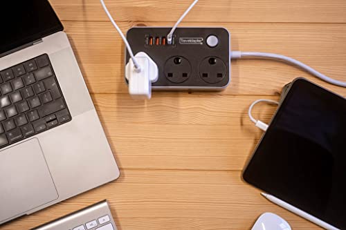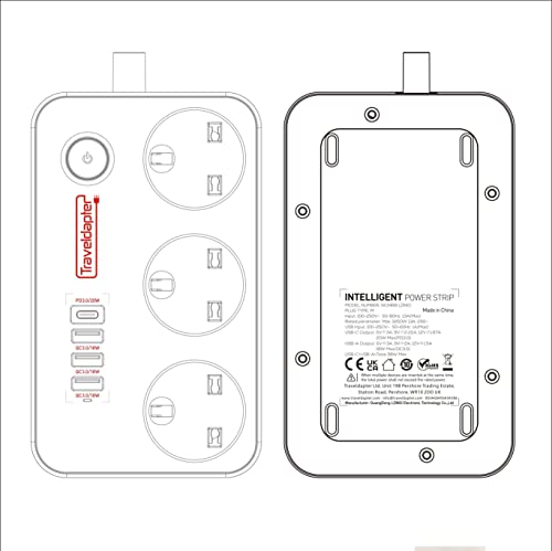 Adattatore da Viaggio NUOVA ZELANDA Cavo di prolunga Presa Multipla di alimentazione 7 ingressi Cavo ultra Compatto per Viaggi Spina di tipo I a 3 pin con messa a terra spina 3 prese tipo G 4 USB 1,5 m bianco