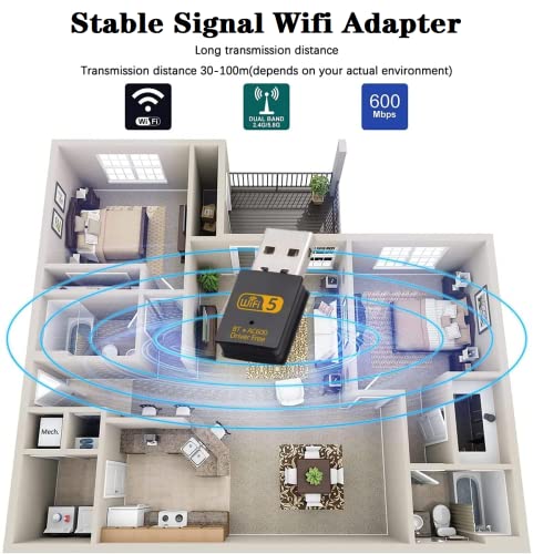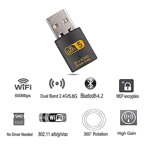Adattatore USB WiFi Bluetooth Dongle, 600Mbps Adattatore WiFi Dual-Band 2.4/5.8 Bluetooth 4.2 GHz Mini Ricevitore Adattatore schedadi Rete Wireless per Laptop Desktop Win10 / 8/8.1/7