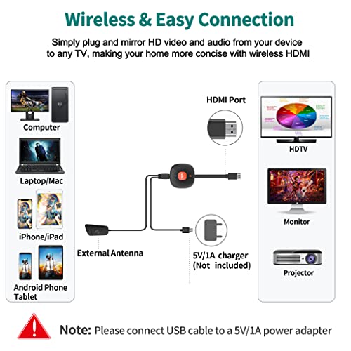 【PLUG AND PLAY 】 Niente più cavi disordinati, piccoli e leggeri, facili da trasportare. Bastano 3 semplici passaggi: Plug>Connecting>Mirror. Basta collegare e riprodurre dopo la configurazione iniziale per il tuo prossimo utilizzo. Questo 4K adattatore HDMI wireless è più economico e più accettato dalla maggior parte delle persone rispetto ad alcuni marchi famosi e smart TV.Può essere utilizzato per lezioni di famiglia/teatro, riunioni d'ufficio, viaggi all'aperto e feste informali.
