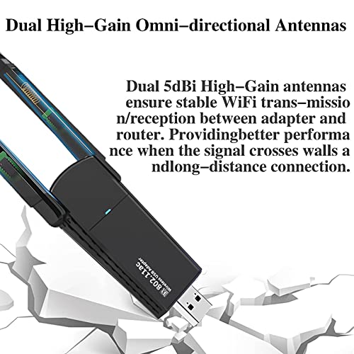 Due antenne WIFI ad alto guadagno: l'adattatore di rete USB per computer con due antenne ad alto guadagno da 5 dBi migliora significativamente la potenza del segnale ricevuta e trasmessa. L'antenna girevole a 180 ° fornisce una trasmissione wireless più forte e riceve segnali da ogni angolazione.