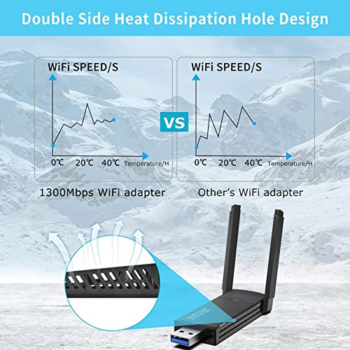 Adattatore wireless USB WiFi per PC portatile 1300 Mbps, USB 3.0 WiFi Dongle 802.11AC con antenna a guadagno 2,4 GHz/5 GHz Dual Band 5dBi, adattatore di rete USB 3.0