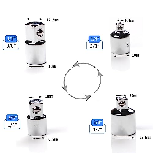 Set di Adattatori Adattatore,Set di Adattatori Chiave a Cricchetto,Set di Adattatori per Bussole,4Pcs Chiave Set Acciaio al Cromo,per Bussole 1/4" a 3/8",da 3/8" a 1/4",da 3/8" a 1/2",da 1/2" a 3/8"