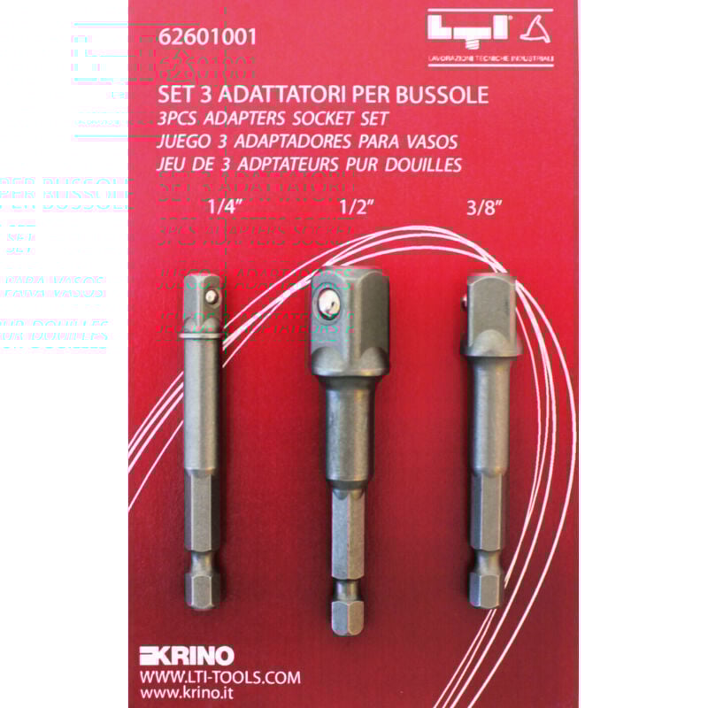 ADATTATORE MASCHIO PER BUSSOLE DA QUADRO AD ESAGONALE SET DA 3 PEZZI CONTENUTO SET: · 1 adattatore da quadro poll. 1/4 a esagonale poll. 1/4 (lunghezza mm. 65);