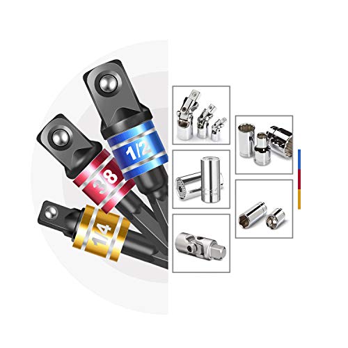 ☆ Dimensioni: punte da 1/4 "3/8" 1/2" e ciascuna con un set di adattatori per chiavi a bussola con attacco esagonale da 1/4". Converte qualsiasi set di utensili elettrici set di punte da trapano in un set di bussola. Anelli diversi colori codificati rendono più facile scegliere quello giusto.