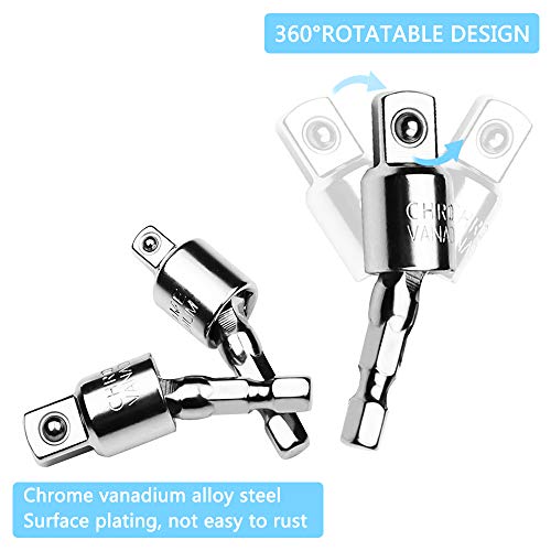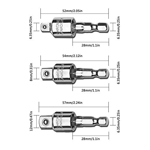 Set di adattatori per bussole per trapano elettrico 3 pezzi, adattatore per bussola per avvitatore a impatto con codolo esagonale ruotabile a 360 gradi, 1/4 "3/8" 1/2 "per mandrino per trapano