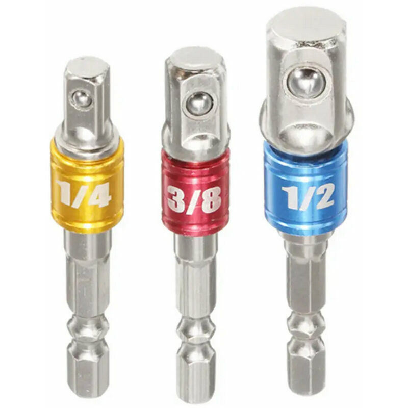 Questo kit è perfetto per il tuo avvitatore a percussione o trapano e ti consente di sostituire il tuo cricchetto con un utensile elettrico I cuscinetti a sfera caricati a molla sulla testa tengono saldamente la base Adatto per sistemi di cambio rapido Chuck da 1/4 di pollice o direttamente nel mandrino del trapano. Cambia il tuo set di prese manuali in un set di prese guidate Questi adattatori resistenti agli urti sono adatti per le applicazioni più esigenti. La presa esagonale da 1/4 di pollice si adatta a tutti i mandrini a cambio rapido e ai mandrini standard. Adattatore per punte, cacciavite per trapano, barra di prolunga elettrica, 3 pezzi da 1/4 di pollice, 3/8 di pollice, 1/2 di pollice Ampiamente usato: fai da te domestico, camera da letto, parti di automobili, specializzato nella riparazione di macchinari e così via. Cambia mano in un kit guidato caratteristica: 1. Il cuscinetto a sfera caricato a molla della testa tiene saldamente la presa. 2. Adatto per sistema di cambio