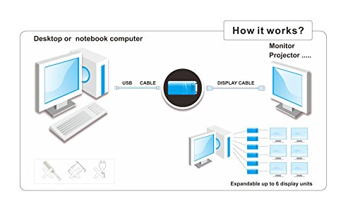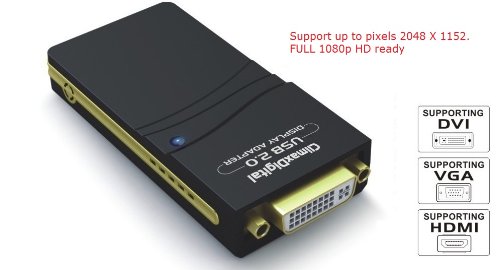 Utilizza il più recente Chipset DisplayLink DL-3500, supporta schermi fino a 2 K risoluzione 2048 x 1152/1920 x 1200 con colori a 32Bit.