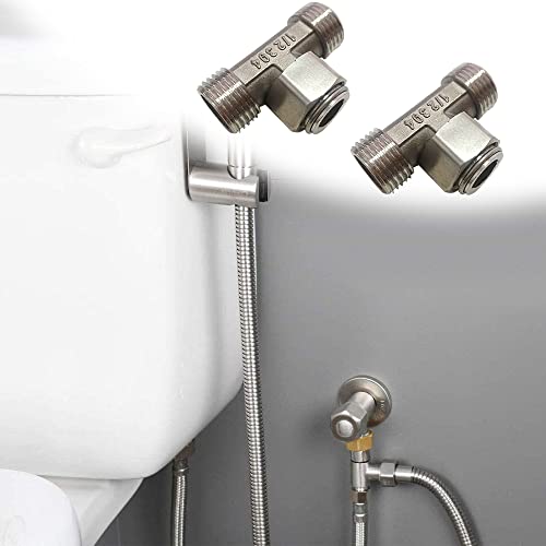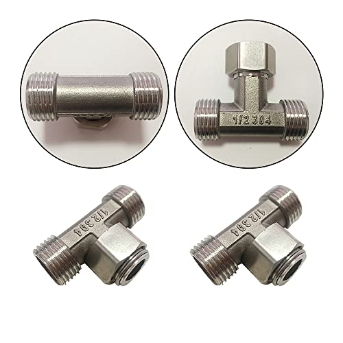 2 adattatori maschio per tubi filettati in acciaio inox a T da 1/2" a 3 vie, per braccio doccia da bagno