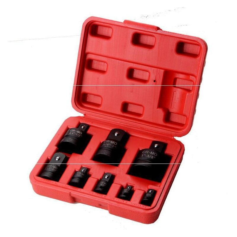 CONTENUTO: adattatori quadrati cavi a quadrati rialzati (8 pezzi): 1/4" femmina a 3/8" maschio, 3/8" a 1/2", 1/2" a 3/4", 1" a 3/4", da 3/4" a 1", da 3/4" a 1/2", da 1/2" a 3/8", da 3/8" a 1/4" < p> SICURO: capi di grandi dimensioni con foro per spilla da balia o molla di ritegno. Il blocco a sfera garantisce una buona tenuta dei dadi. COMPOSIZIONE: acciaio al cromo-vanadio (CrV) con superficie nera opaca di alta qualità per un'efficace protezione contro la corrosione e una maggiore durata. Tutte le parti sono conformi alle attuali norme DIN. CASSA: tutti gli adattatori sono conservati in una custodia per il trasporto. Le scritte nella scatola ti permettono di mettere ogni strumento al suo posto.