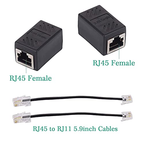 2 adattatori RJ45 a RJ11, nero RJ45 8P8C a RJ11 6P4C cavo telefonico + convertitore di espansione RJ45, connettore per cavo telefonico RJ11 a modem RJ45/ADSL