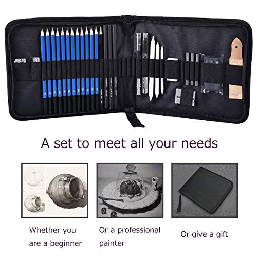 Ampia variabilità: fornisce matite di grafite da 8B a 6B, 5B, 4B, 3B, 2B, B, HB, 2H, 3H, 4H e 5H. Matite a carbone e matite in grafite sono disponibili in diverse durezze: morbide, medie, dure. Si tratta di un set artistico davvero versatile per voi, non importa se siete principianti o artisti professionisti