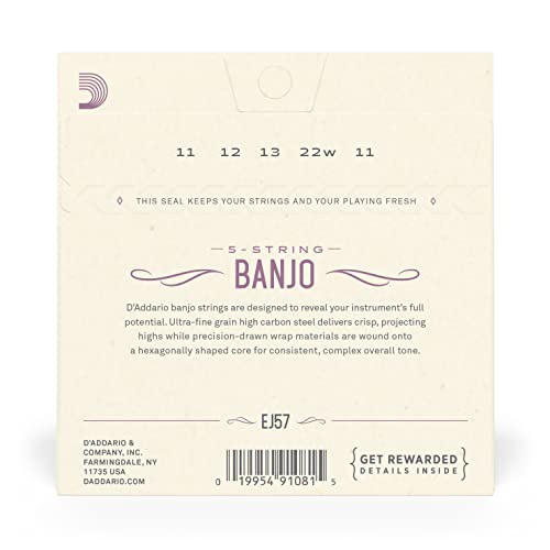 D'Addario EJ57 5-String Banjo Strings, Nickel, Custom Medium, 11-22